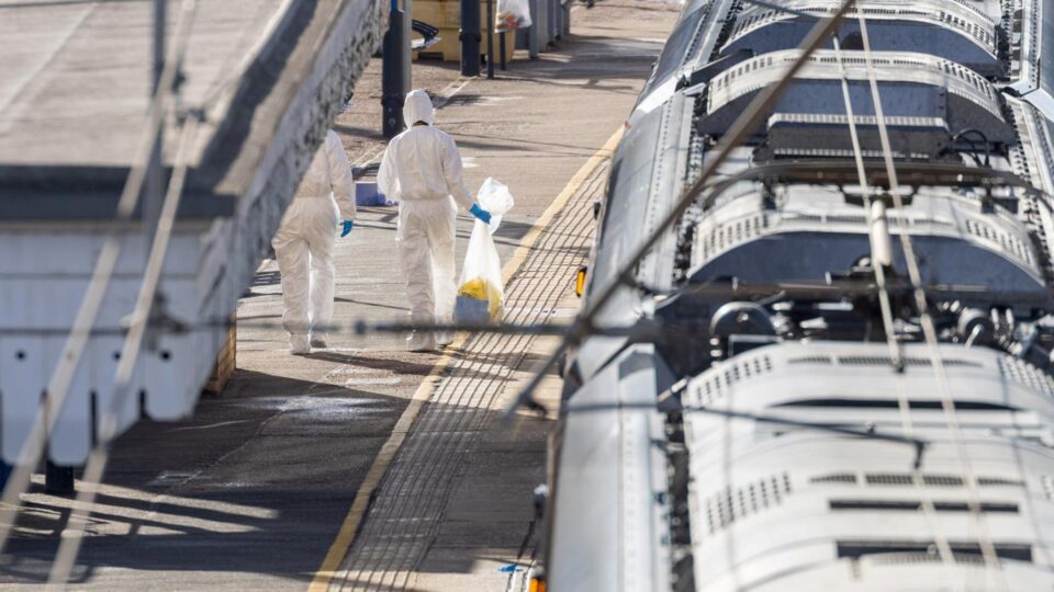 Estação de trem em Huntington, onde o veículo realizou uma parada de emergência após os ataques (Foto: EFE/EPA/TAYFUN SALCI)