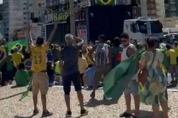 Durante a mobilização, os manifestantes exibiram bandeiras e símbolos remetentes ao Brasil e o protesto foi conduzido por um trio elétrico.