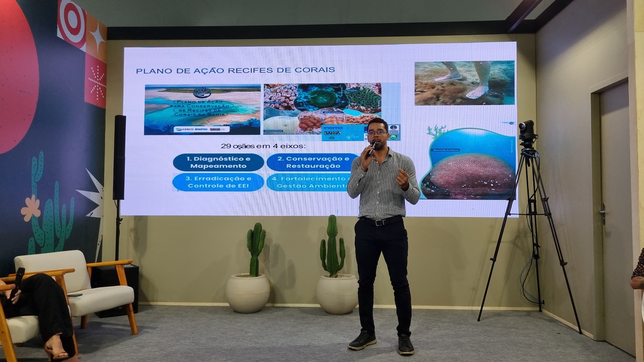 O Governo do Estado, por meio da Secretaria do Meio Ambiente (Sema), segue presente na 30ª Conferência das Nações Unidas sobre Mudanças Climáticas (COP30), que começou na última segunda-feira (10) e segue até 21 de novembro, em Belém (PA). A participação da Bahia contempla debates, rodas de diálogo e atividades técnicas em diversos espaços oficiais do evento, como o Consórcio Nordeste, a Casa ABEMA, o Pavilhão Brasil (Green Zone) e a Casa Voz dos Oceanos. Durante a conferência, o superintendente de Políticas e Planejamento Ambiental da Sema, Luiz Araújo, apresentou o Programa Agente Jovem Ambiental (AJA), que promove a educação ambiental. O programa alia aprendizado, protagonismo e transformação social. “Participei de um painel com representantes dos governos do Ceará e da Paraíba, discutindo o Programa AJA em seus diferentes estágios de implementação. O Ceará foi pioneiro na criação do programa, a Paraíba já conta com um ano de execução e, aqui na Bahia, estamos em fase de implantação. Apresentamos o AJA Bahia, que beneficiará mil estudantes da rede pública da região da Baía de Todos-os-Santos, jovens do ensino médio e profissionalizante que receberão uma bolsa de incentivo e serão acompanhados por professores mediadores, também bolsistas. Iniciaremos por essa região, com a expectativa de expandir o projeto gradualmente para todo o estado”, destacou Araújo. Conservação marinha Já o diretor de Políticas e Planejamento Ambiental da Sema, Tiago Porto, destacou os avanços da Bahia na conservação dos ecossistemas costeiros e marinhos. Com 90 mil hectares de manguezais e 14 mil hectares de recifes de corais, o estado ocupa posição de destaque no cenário nacional. “A Bahia abriga cerca de 7% dos manguezais brasileiros, o que nos coloca na quarta posição, atrás apenas dos estados amazônicos. Também concentramos aproximadamente 60% dos recifes de corais raros do país. Diante dessa riqueza natural, temos trabalhado na elaboração e implementação de políticas públicas voltadas para a conservação e restauração desses ecossistemas”, afirmou Porto. Ele ressaltou ainda que a Bahia já superou a meta global de 30% de áreas marinhas protegidas até 2030, compromisso firmado internacionalmente por diversos países. “Enquanto a meta mundial prevê que 30% das áreas marinhas estejam sob proteção até 2030, a Bahia já alcançou 43,2% de sua área marinha incluída em unidades de conservação. E o mais importante é que não se trata apenas de delimitar territórios, mas de fortalecer as ações dentro dessas unidades, com iniciativas concretas de conservação, restauração e redução da vulnerabilidade ambiental”, destacou. Entre as ações em andamento, Tiago mencionou o Plano de Conservação dos Corais e Espécies Associadas. “Temos algumas ações executadas de enfrentamento a espécies exóticas invasoras e as ações de defesa das espécies marinhas protegidas, além da elaboração do calendário e a caravana no defeso”, acrescentou. Protagonismo do Nordeste no enfrentamento às mudanças climáticas Além das apresentações técnicas, Tiago Porto também representou o Consórcio Nordeste em uma roda de conversa promovida pela Casa do Jornalismo Socioambiental, realizada na noite de quarta-feira (12), em Belém. O encontro reuniu jornalistas, representantes de movimentos ambientais e gestores públicos, e teve como foco o protagonismo do Nordeste no enfrentamento às mudanças climáticas, com ênfase na preservação da Caatinga. “Fui convidado pelo chefe de gabinete do Consórcio Nordeste para representar o grupo nessa conversa com o movimento e com a Casa do Jornalismo Socioambiental. Foi um momento muito interessante, porque tivemos a oportunidade de destacar o papel do Nordeste nas ações de adaptação e mitigação climática, especialmente na Caatinga, um bioma que simboliza a resistência e a inovação ambiental da região”, relatou Porto. Fonte: Ascom/Sema | Foto: Divulgação/Ascom Sema