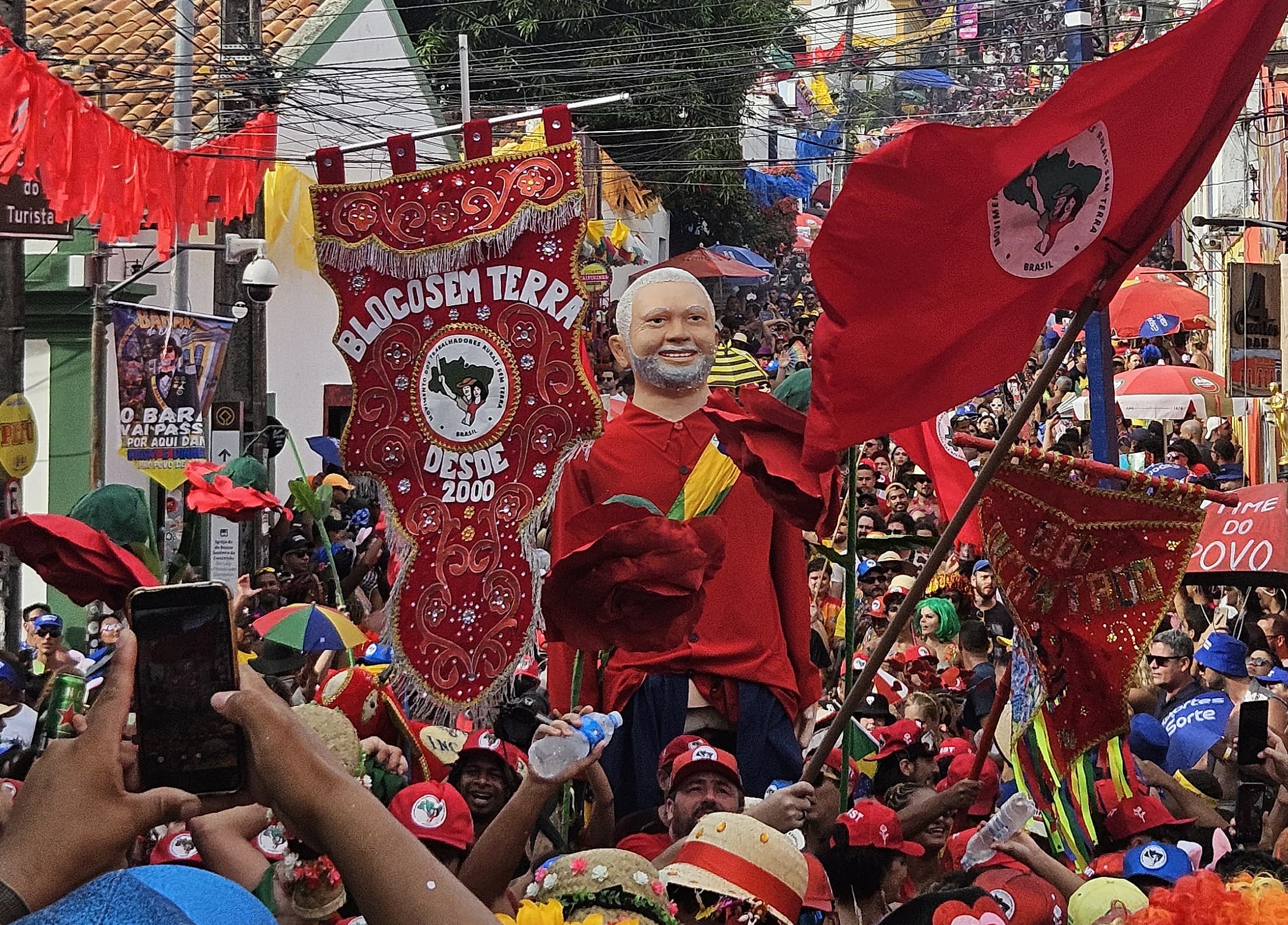 O desfile do Bloco Sem Terra reuniu cerca de 5 mil pessoas nesta segunda-feira (16) de Carnaval, em Olinda, Pernambuco. Tanta gente, que forçou o bloco a sair mais cedo do que o esperado da barraca do Movimento dos Trabalhadores Rurais Sem Terra (MST), que este ano ficou atrás da Igreja do Carmo. A concentração teve início por volta das 14h, reunindo militantes, amigos e simpatizantes com muita diversão, fantasias políticas e da cultura nacional, como a dona Sebastiana do filme O Agente Secreto. Bandeiras do MST e um bonecão do presidente Luiz Inácio Lula da Silva também faziam parte do cortejo. No caminho, o bloco recebeu amplo apoio da população pelas ruas do Sítio Histórico, como a Rua do Bomfim. Para os participantes do bloco, inclusive, unir luta e diversão é fundamental para o avanço das demandas populares. “Não tem revolução, nem democracia, sem folia, sem festa, sem alegria do povo, sem cultura popular. É por isso que a gente tá aqui mais uma vez no maior carnaval do mundo, Carnaval de Olinda, de Recife, para festejar com o povo, festejar o movimento sem terra, o carnaval e a nossa revolução e a democracia”, afirma Pedro Alcântara, vice-presidente do PT em Pernambuco. Além das manifestações dos participantes, o bloco também traz uma proposta de tema do desfile. Neste ano, foi escolhido o lema “soberania e folia não se negocia”, levantando a bandeira da luta anti-imperialista, criticando os desmandos do governo estadunidense sob o comando de Donald Trump, que é representado por um boneco gigante no bloco. “Esse é o foco principal, nesse momento histórico, com todo esse ataque que o imperialismo vem fazendo na América Latina, na busca pelos recursos naturais do povo latino-americano, em especial com essa grande agressão que aconteceu à Venezuela e com a captura do presidente Nicolás Maduro. Soberania não se negocia”, explica Paulo Mansan, da Coordenação Nacional do MST. O Bloco Sem Terra também defendeu o fim da escala 6×1, em uma perspectiva de lazer como direito humano, presente no artigo 24º da Declaração Universal, reivindicação diretamente ligada ao direito ao tempo livre e ao descanso. A vereadora de Olinda, Eugênia de Lima (PT), que contou com um bonecão em sua homenagem, destacou que o tema do Bloco Sem Terra dialoga também com as demandas dos próprios trabalhadores do Carnaval. “A gente está com o Carnaval possível, não o melhor Carnaval, não o Carnaval que a gente queria. Após o Carnaval, vamos começar uma consulta pública para que a gente possa garantir os direitos, melhorar as condições dos trabalhadores, que são eles que fazem essa folia ser o que é. Carnaval também é política e a gente deve garantir os direitos para todos os trabalhadores que fazem dessa festa ser o que ela é”, afirmou. Desde 2013, desfilando no centro histórico No ano 2000, o MST montou uma barraca para comercializar alimentos e bebidas no Carnaval de Olinda, buscando construir aquele como um local de encontro da militância na festa. Já naquele ano, os presentes decidiram colocar uma troça na rua, saindo da Ribeira, com o nome “Vará pra funcionar”, um trocadilho com a burocracia para colocar uma placa em frente ao escritório do movimento no Recife, já que foi necessário um alvará. No ano seguinte, a troça trouxe o brinquedo popular do boi. Ano após ano, a troça cresceu e desfila, desde 2013, como um grande bloco pelas ruas do Sítio Histórico, unindo política e brincadeira, a luta e a festa, e atraindo lideranças políticas e sociais, militantes, ativistas, amigos e simpatizantes do movimento, além de outras troças e estandartes ligados às lutas sociais, como aquelas tocadas pela União Nacional dos Estudantes (UNE), pelo Levante Popular da Juventude e pela União da Juventude Socialista (UJS). Em 2026, o Bloco Sem Terra realizou uma prévia gratuita, no fim de janeiro. Desde 2013, os integrantes e simpatizantes do MST desfilam no centro histórico de Olinda | Crédito: Anderson Stevens/Comunicação Rosa Amorim O quartel general do Carnaval do MST foi montado na rua Dom Pedro Roeser, nº 190, no bairro do Carmo. O local é popularmente conhecido como Sítio de Seu Reis e fica por trás da Igreja do Carmo. Com acesso gratuito e aberto à população, o local conta com DJ e bandas ao vivo todos os dias, mesas e cadeiras, comercialização de bebidas e refeições com itens da reforma agrária, mesas e cadeiras, chuveirão e uma cama elástica para as crianças. Neste ano de 2026, o movimento deu início também ao Bloco do MST, no Rio de Janeiro, tendo ido às ruas no dia 7 de fevereiro, na Cinelândia. O Movimento Sem Terra foi também homenageado no Carnaval de São Paulo, pela Acadêmicos do Tatuapé, que teve a agricultura familiar e a luta pela reforma agrária como temas centrais. O desfile contou com lideranças e amigos do MST nos carros alegóricos.
