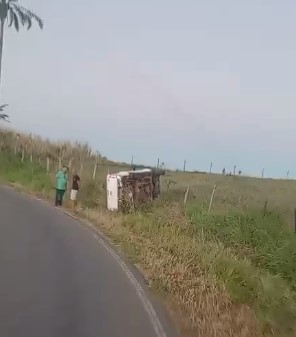 Um motorista que não teve o nome divulgado trafegava pela via registrou o momento em que se deparou com um carro capotado na estrada.
