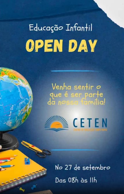 O Centro de Educação Tempo Novo (CETEN) abre suas portas no próximo sábado (27) para um evento especial voltado às novas famílias da Educação Infantil. O Open Day será realizado das 8h às 11h e tem como proposta proporcionar uma manhã cheia de música, arte, movimento e atividades que favoreçam a interação entre pais e filhos.