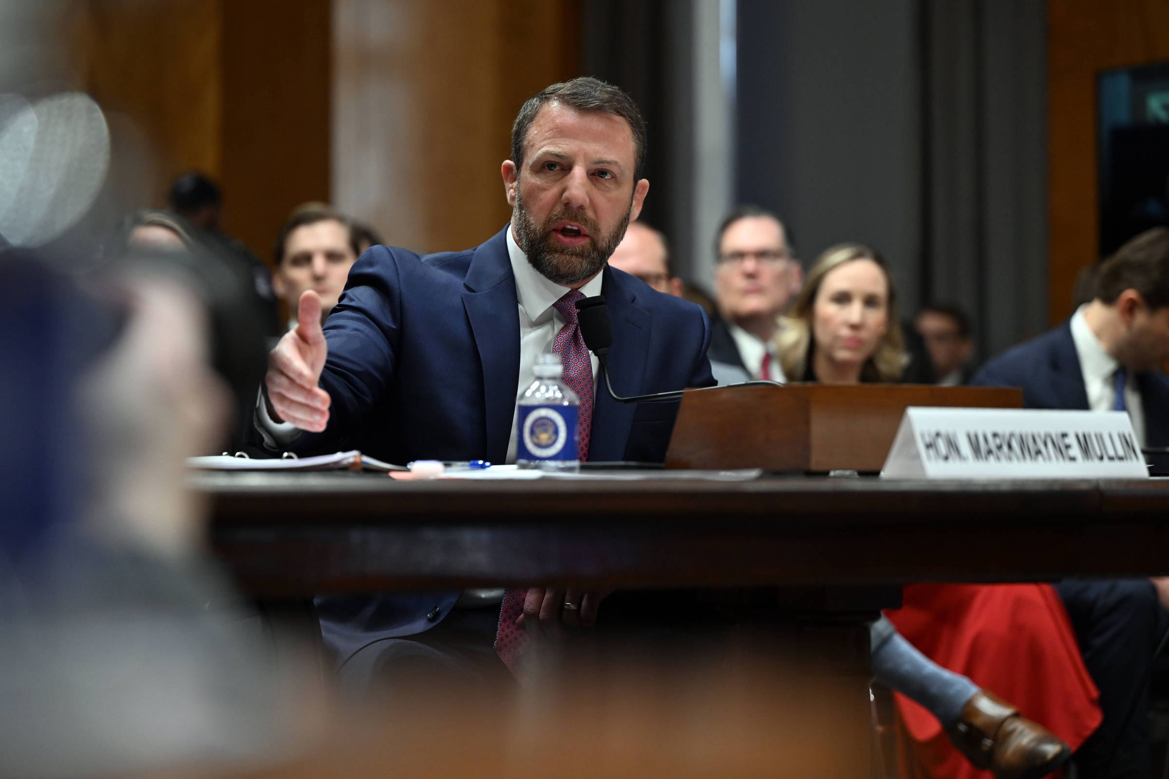 Senadores dos Estados Unidos agiram para acelerar a nomeação de Markwayne Mullin, indicado pelo presidente Donald Trump para chefiar o Departamento de Segurança Interna. A agência está no centro da campanha de deportação em massa do republicano. O Comitê de Segurança Interna do Senado votou por 8 a 7 para enviar a nomeação de Mullin ao plenário da Casa com uma recomendação favorável. A maioria dos republicanos e um democrata votaram a favor do avanço da nomeação. O republicano Rand Paul, presidente do comitê, votou contra. Com o voto favorável do democrata John Fetterman, no entanto, o apoio foi suficiente. Agora, espera-se que o senador enfrente uma votação de confirmação no plenário na próxima semana. Havia expectativa de que Mullin fosse confirmado rapidamente, uma vez que ele é bem visto por seus colegas. Mas essa possibilidade foi colocada em dúvida nesta quarta-feira (18), quando o indicado entrou em conflito com Paul sobre seu temperamento. Lá Fora Receba no seu email uma seleção semanal com o que de mais importante aconteceu no mundo O presidente do comitê ameaçou bloquear a votação se Mullin não detalhasse uma viagem que fez ao exterior enquanto era membro da Câmara —ação que o indicado afirmou ser sigilosa. Paul e o senador Gary Peters, o principal democrata na comissão, exigiram então que o colega revelasse os detalhes em uma sala segura após a audiência. Mais tarde, Paul disse a jornalistas que planejava votar contra a confirmação de Mullin. Se confirmado, ele assumirá o Departamento de Segurança Interna em um momento delicado. Sob a gestão da secretária Kristi Noem, que está deixando o cargo, o órgão avançou na meta de Trump de impor políticas de imigração mais rigorosas, reduzindo drasticamente as travessias ilegais da fronteira e aumentando a contratação de agentes do ICE, a polícia de imigração dos EUA. No entanto, pesquisas mostram uma queda no apoio à agência após um ano de amplas ações de fiscalização da imigração em cidades governadas por democratas, incluindo Los Angeles, Chicago e Minneapolis. O departamento foi alvo de críticas de membros de ambos os partidos depois que dois cidadãos americanos foram mortos a tiros por agentes de imigração durante protestos em Minnesota. Desde 14 de fevereiro, os democratas no Congresso se recusam a liberar verbas para o departamento, exigindo novas restrições à aplicação das leis de imigração. Mullin é um apoiador ferrenho de Trump e de sua campanha de deportação em massa. Mas em sua audiência de confirmação, na quarta, tentou adotar um tom mais cooperativo e sugeriu que romperia com algumas das práticas de Kristi. Ele disse aos senadores que, sob sua liderança, os agentes de imigração não entrarão mais em residências sem um mandado judicial, sugerindo uma mudança em relação às grandes operações de busca e apreensão em áreas urbanas. Ele também prometeu revogar uma política que havia retardado o fluxo de verbas de auxílio em desastres por meio da Agência Federal de Gestão de Emergências, que é supervisionada pelo Departamento de Segurança Interna.