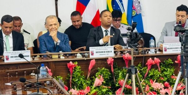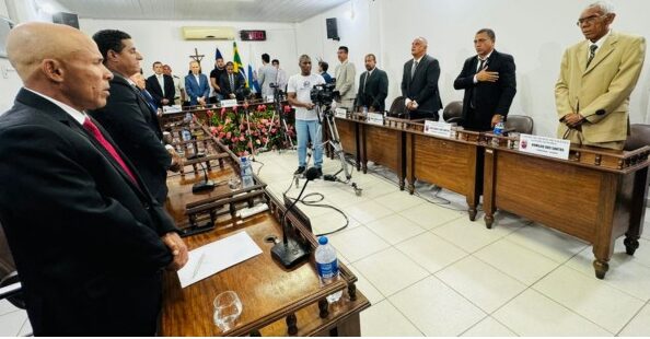 A sessão contou com a presença do prefeito Marcos Medrado, da vice-prefeita Lorena Mercês, além de parlamentares, autoridades locais e representantes da sociedade civil, evidenciando a importância do momento para a democracia e a vida política do município.