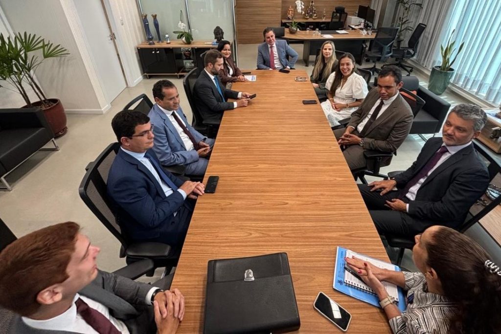 Presidente do TJBA e Prefeitura de Lauro de Freitas dialogam sobre temas de interesse mútuo O Presidente do Tribunal de Justiça da Bahia (TJBA), Desembargador José Edivaldo Rocha Rotondano, recebeu a visita institucional da Prefeita de Lauro de Freitas, Débora Regis, nesta terça-feira (24). As duas autoridades trataram de pautas relevantes para a administração municipal e para a prestação jurisdicional na comarca, como o pagamento de precatórios e a construção do novo fórum, além da renovação de um termo de cooperação que versa sobre a cessão de servidores. A Prefeita de Lauro de Freitas esteve acompanhada do Secretário da Fazenda, Ricardo Gois; do Secretário de Administração, Tássio Lima Azevedo; do Procurador Geral do Município, Jarbas Magalhães; do Procurador Fiscal, Luiz Agle; e do advogado Vagner Cunha. Pelo TJBA, além do Desembargador José Rotondano, participaram da reunião os Juízes Sadraque Oliveira Rios Tognin, Liana Dumet e Adriana Sales Braga, Assessores Especiais da Presidência; e a Secretária de Administração, Carla Santiago.