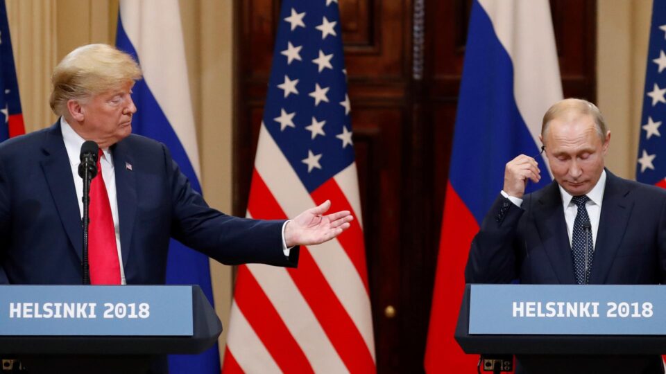 Trump e Putin em 2016, na Finlândia, durante coletiva de imprensa conjunta: o líder americano encontrou barreiras para negociar o fim da guerra na Ucrânia com o ditador russo (Foto: EFE/ Anatoly Maltsev)