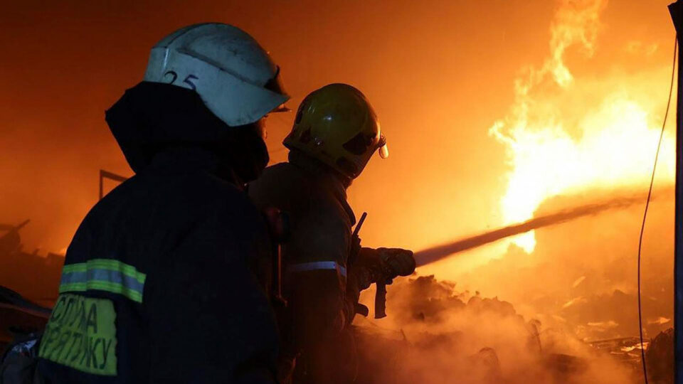 Bombeiros combatem um incêndio provocado por um ataque de drones e mísseis russos na região de Dnipropetrovsk, na Ucrânia. (Foto: EFE/Dnipropetrovsk Regional State Administration)